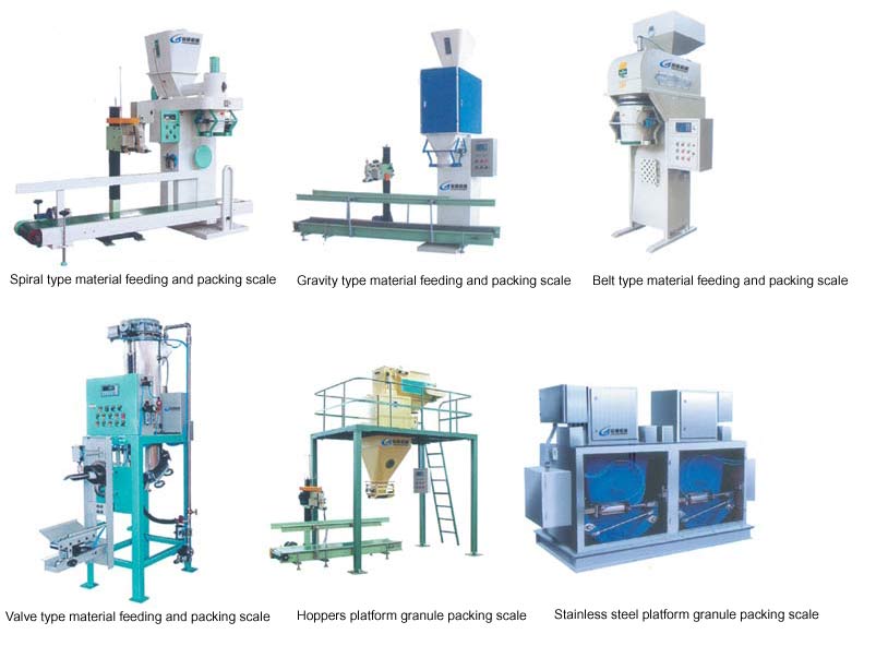 Packing machine consists of automatically quantitative packaging scale and other optional parts (conveyer, sealing machine/heat sealing machine).The material will be supplied by spiral, gravity and belt, come output from the material feeder. They consist of hoppers, feeder, hoppers for bags weighting and inserting, kneader, weight instrument sensor pneumatic parts and on. It applies to the automatic quantitative packaging of feed, food, grain, pesticides, milk powder, spices, enzymes, washing powder, monosodium glutamate, white sugar, Chinese traditional medicine, desiccant, desiccant, material for soup, soybean meal, building materials, chemical industries powder and granular material and so on.(such as mixture, premix, enrichment material, fish meal, eel, feed, softener, times of powder, bran, etc)
